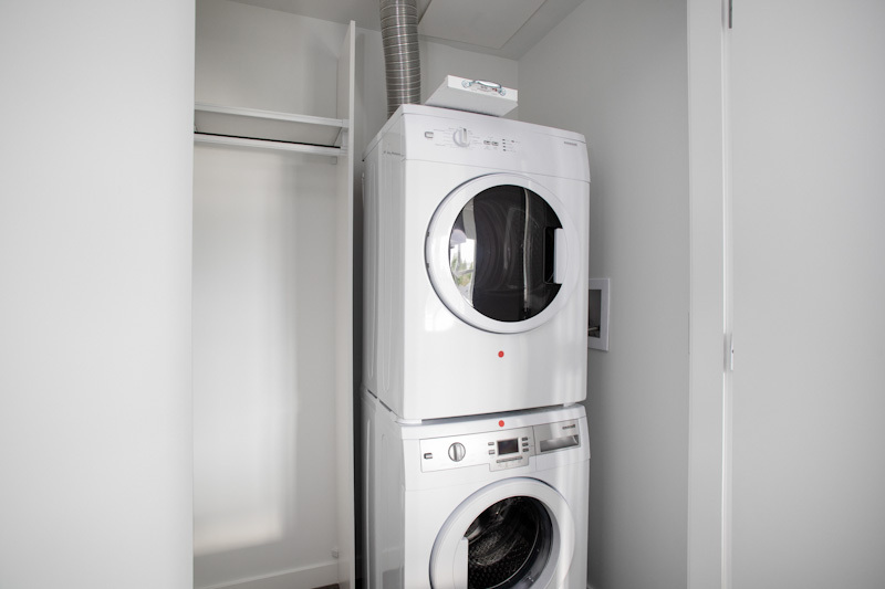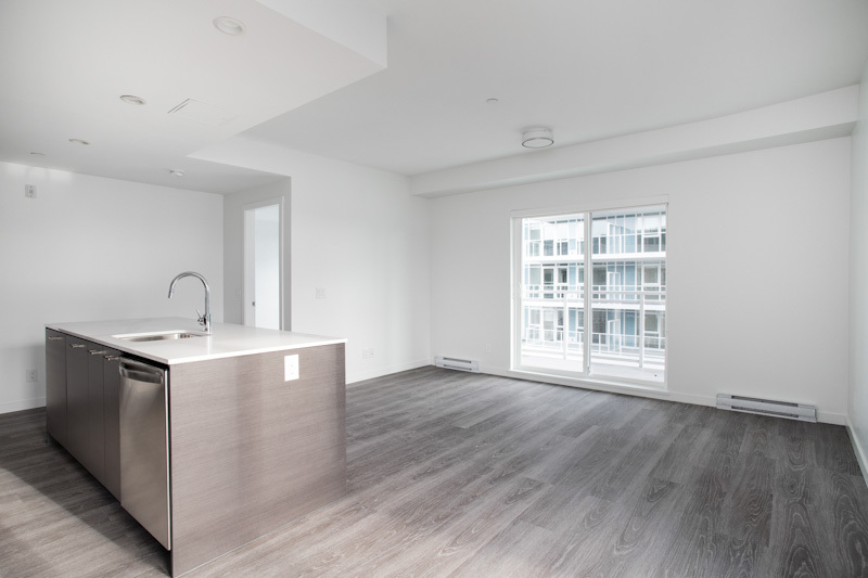 Our largest 2-bedroom plan, the D4 plan sits at 840sqft. With an 8ft long kitchen island, you have copious amounts of prep space, all while doubling as a breakfast bar. Fitted with low-energy appliances, LED lights and beautiful quartz counters, this kitchen is modern and sleek. The ideal space for roommates, or families as both rooms are on opposing sides and provide a great deal of privacy. This corner suite offers large windows and natural light all year round.